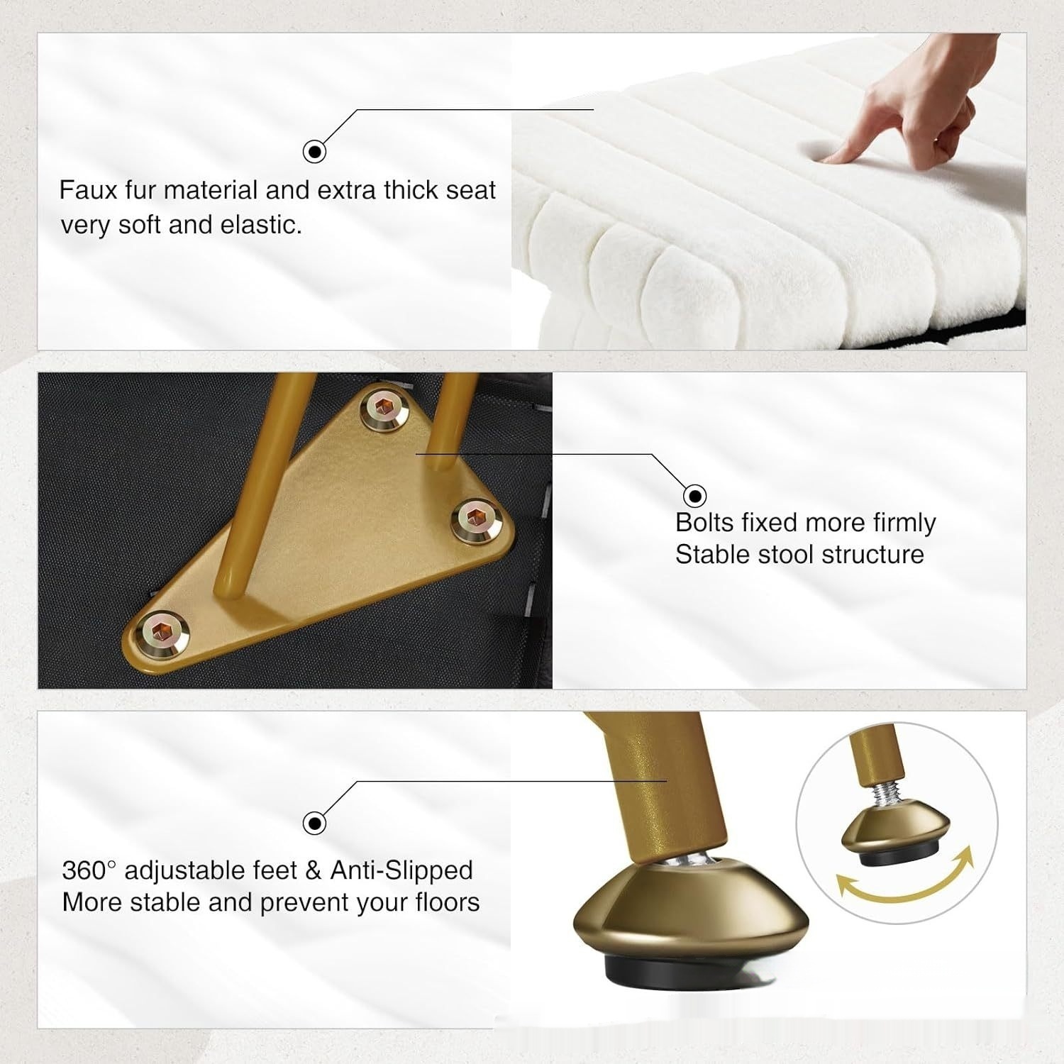 Dresser Square White Small Size Makeup Stool